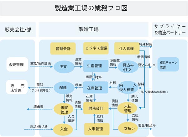 製造工場(chǎng)內(nèi)部の経営/生産など業(yè)務(wù)システムをサポートし、“業(yè)務(wù)職能”の方式によって管理系、生産系、販売系と區(qū)分しています。製造工場(chǎng)の経営管理、総務(wù)などの管理職能部門(mén)、生産ライン、倉(cāng)庫(kù)などの生産管理部門(mén)、販売會(huì)社、販売店などのためのシステム化サポートを提供し、業(yè)務(wù)分野は財(cái)務(wù)、仕入、人事、生産製造、物流倉(cāng)庫(kù)、販売管理、アフタサービス管理、店舗管理などにも関わっています。