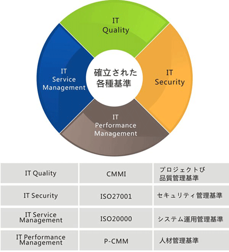 弊社はグローバル・サービス管理標(biāo)準(zhǔn)ISO20000を基準(zhǔn)として、IT運(yùn)営と管理サービスを提供し、サービスの実施、制御、アナウンス、解決、関係管理の5つ分野の13プロセスを含めて、継続的な改善活動(dòng)を?qū)g施し、お客様とお客様業(yè)務(wù)のニーズを満足させています。